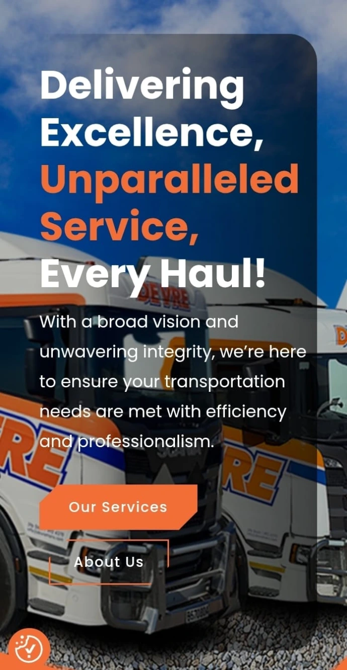 Our mission at De Vre Trans is to provide unparalleled transport and logistics services that enhance the efficiency and competitiveness of our clients in the global marketplace. Committed to cost-effectiveness, superior service quality, and continuous improvement, we strive to empower our people, foster business excellence, and contribute to the sustainable development of the regions we serve.